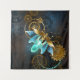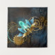 Barbeiro véu com asas transparentes azuis e lâmpada verde sobre fundo vestido, marrom, texturizado. Estilo Steampunk.