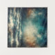 Painting of stormy waves crashing against each other, under a turbulent sky with a mix of blue and earthy tones. The scene evokes a sense of drama and nature's raw power painted in a nostalgic distressed style of an old photograph with the look of old home movies. Ad a touch of the ocean to your home.
