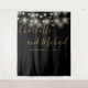 Com luzes bonito de cordas e guião de tipografia chic, este pano de fundo de fotos de casamentos preto-e-ouro pode ser personalizado com seus nomes e data especial. Projetado por Thisnotme©