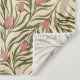 Seamless repeating pattern featuring stylized pink bell-shaped flowers interspersed with flowing, dark green foliage against a pale cream background.