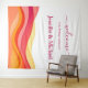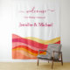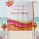 Printed as a soft, lightweight tapestry, this welcome sign offers a fresh alternative to traditional signage. It adds texture and visual impact while remaining easy to hang, transport, and reuse after the celebration. The modern sunset palette creates an inviting, joyful atmosphere that feels perfect for beach, destination, resort, and summer weddings.