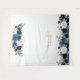 Design de cartão elegante com belos buquês de flores cor-de-rosa, coradas e azuis em aquarela, fontes elegantes. Use a ferramenta Personalizar para adicionar suas informações e fazer alterações. Para itens correspondentes, visite minha Coleção Floral Azul Marinho Corada.