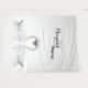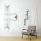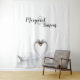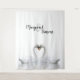 Dois belos cisnes apaixonados por dobrar a cabeça e formar um coração. Um passado elegante, perfeito para uma casa moderna, um presente de casamento ou para um aniversário de casamento! Um casal cisne fica juntos para a vida, então eles são o símbolo perfeito do amor. Modelo para dois nomes, letras negras. Também pode ser usado como faixa ou fundo fotográfico em um aniversário de casamento.