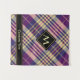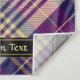 Design púrpura, ouro amarelo e tartã azul. Um padrão perfeito. Texto personalizado e monograma.