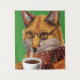 Esta raposa caracteriza uma raposa vestida nos eyeglasses e no lenço da malha que bebe um copo quente do chá.