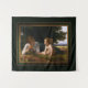 Tentação c1880 do pintor francês William Bouguereau (1825-1905); dos NeoClassic e Academic Periods, que criaram interpretações modernas de assuntos clássicos com base em temas mitológicos. Uma bela e adorável pintura de uma jovem senhora e de uma menina de cerca de 3 anos relaxando no chão, com a jovem deitada e o bebê sentado por um lago com lírios d'água nele, em um vasto terreno com várias árvores atrás deles.