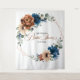 Elegante Azul marinho, Terracota, tema floral terroso laranja, chuveiro de noiva, fundo de fotografia / adereço de cabine de fotos com um buquê elegante de rosas cor-de-terracota, peônias azuis marinho e folhas de eucalipto verde. Por favor, entre em contato comigo para obter ajuda na personalização ou se você precisar de qualquer outro produto com este design.
