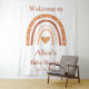 Este é um arco-íris fofo personalizado em terracota, laranja, pêssego e marrom com dentro grande. ele tem um nome personalizado que você pode mudar facilmente clicando no botão personalizar. É uma tapeçaria excelente de boas-vindas para festas chás de fraldas
