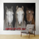 Three Horses Party Time Photo Backdrop . Nature's Animals - Three horses ready to party. Saddle. Use as a celebration banner, photo backdrop or wall art memento. Three horses close up faces Art Canvas. You can change background, add your own personalized text, size and styles of canvas. Wild nature western theme or funny horse party celebration or event. Picture is resizable too. Great party decoration backdrop for events or dramatic wall art for those that love these amazing animals.
