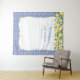 Pano de fundo em tecido com limões aquarela / folhas / lindas flores contra uma borda de azulejos vintage azuis e brancos. Tenho convites e outros artigos de papelaria no mesmo design (por favor, veja a coleção).