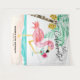 Adicione um clima alegre e praiano à decoração da sua festa de aniversário com esta toalha tropical! Com um flamingo rosa fofo na praia aproveitando um coquetel tropical ao lado de uma palmeira com uma legenda "vamos celebrar" em letra manuscrita moderna e casual. Isso também serve como um cenário fotográfico divertido para você e seus convidados. Arte por KL Stock.