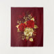 A composição de duas rosas vermelhas pintadas artisticamente e uma rosa ouro, decorada com ouro, folhas de joias sobre fundo texturizado.