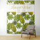 Adicione um toque de elegância tropical ao seu grande dia com este Fundo de Casamento Dourado e Verde de Folhas Tropicais. Apresentando um padrão exuberante de folhas tropicais verdes grandes e um refinado quadro de ouro duplo, este cenário mostra tipografia de ouro personalizável para os nomes da noiva e do noivo, data do casamento e local. Perfeito para casamentos de destino, cerimônias de praia, ou recepções de ilhas, cria um cenário surpreendente para fotos, mesas amorosas ou entradas de cerimônias.
