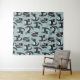 Felinos brancos e pretos, em seu negócio. Um padrão divertido num fundo azul de médio. Arte original de Nic Squirrell.