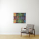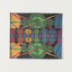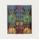 O trabalho de arte na imagem é um design geométrico vibrante e intrincado. Ele apresenta uma série de formas e padrões interconectados, compostas principalmente por círculos, triângulos e linhas. O design é simétrico e passa horizontalmente sobre um fundo preto. Os círculos são preenchidos com várias cores, incluindo roxo, azul, verde, amarelo e vermelho, criando um efeito gradiente de uma extremidade à outra. Cada círculo é intersetado por linhas formando padrões como estrelas, e os círculos são conectados por uma rede de linhas que criam um sentido de profundidade e complexidade. O efeito geral é visualmente impressionante, com as cores brilhantes a contrastar nitidamente em relação ao fundo escuro, fazer em que os padrões geométricos se destacam de forma destacada. Esta trabalho de arte é interessante devido ao seu uso de simetria, gradientes de cor e trabalho intrincado de linha, que juntos criam uma experiência visual dinâmica e envolvente.