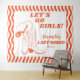 Vamos lá Garotas, tapeçaria personalizada com tema cowgirl western para festa de despedida de solteira em padrão de listra ondulada terracota e branca com botas de cowboy e chapéu de cowboy é perfeita como pano de fundo para fotos da festa de despedida de solteira. Personalizado com seu nome e o slogan "último rodeio". Celebre seu chá de panela com estilo com o tema perfeito de festa country retrô, o tema perfeito para o amante de cavalos, tema vintage do Faroleste selvagem para a noiva cowgirl e suas damas de honra.