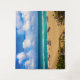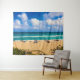 Quando não se consegue ficar longe por um dia na praia, mantenha a praia convosco com a fotografia original de ZoeSPEAK nesta tapeçaria de Muro. Ele apresenta uma visão do oceano sob um céu azul da Flórida cheio de nuvens brancas indefinidas. Os banhistas estão descansando ao longo da linha costeira da areia colorida do ouro à medida que as ondas rolam. As folhas de uva-do-mar no primeiro plano crescem ao longo das dunas pelos degraus até à praia.