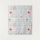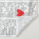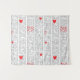A unique wall tapestry featuring poetic book-style text and bold red heart accents inspired by the theme of “Understanding Love.”