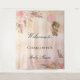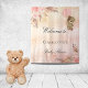 Uma tapeçaria de boas-vindas para um chá de bebê elegante e moderno. Fundo degradê rosa bege rústico e dourado rosa decorado com capim pampas estilo boho, flores rosa bege e dourado rosa e uma ursa menina segurando um balão. Personalize e adicione um nome.