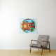 Um belo urso descansando em uma campina verde no centro de um círculo em uma tapeçaria.