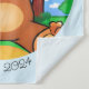 Nas bordas superior e inferior, textos definem de quem é o aniversário, quantos anos ele tem e a data da celebração. (Essas mensagens podem ser substituídas pelas suas favoritas, como “feliz aniversário” se preferir.