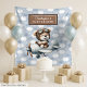 Celebre com estilo com esta adorável tapeçaria do Ursinho Piloto em charmoso design de aquarela azul e marrom. Perfeita para a celebração do chá de bebê de um menino, esta decoração de parede trendy prepara o cenário para um tema de festa caprichoso e moderno. Personalize com um nome ou monograma personalizado para criar uma peça única que também serve como um doce lembrança. Seja usada como pano de fundo para cabine de fotos ou como tapeçaria decorativa para a festa, este design traz diversão e elegância. Um item indispensável para futuros pais que amam decoração de chá de bebê fofa, elegante e personalizada.