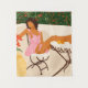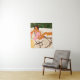 Uma figura relaxada em um saguão cor-de-rosa sobre um pátio iluminado pelo sol, rodeado por verde e florescentes vibrantes. Este trabalho de arte capta o calor e a tranquilidade de uma tarde de verão no Mediterrâneo.