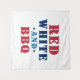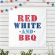 Sinal de tapeçaria de fundo de foto de festa de feriado do Dia da Independência estiloso e engraçado apresenta um design de tipografia personalizado "Vermelho Branco e Churrasco" em cores vermelho, branco, azul, azul-marinho com estrelas.