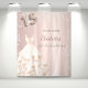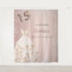 Uma tapeçaria de boas-vindas para uma festa de 15 anos de Quinceañera feminina e glamorosa. Um fundo metálico falso dourado rosa decorado com purpurina prateada falsa e um vestido. Personalize com data e nome. O número 15 é escrito com uma fonte estilo balão. Pode ser usado como decoração de parede da festa ou como fundo para cabine de fotos.
