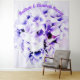 Elegante Violets Tapeçaria é a design perfeita para usar como pano de fundo para sua cabine de fotos de casamento se você está considerando um tema violeta ou lavanda. O texto é personalizável e deve ser substituído pelo seu próprio texto. Projetado para coordenar com a suíte de casamento Elegante Violets.