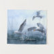 As gaivotas voam sobre o mar, em tons de azul, branco e cinza com toques de ouro complementar. Personalize para seu gosto (até exclua todo o texto se desejar).