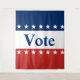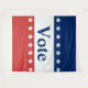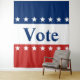 Este pano de fundo de fotos vermelho, branco e azul tem a palavra 'Vote' no centro. O texto é azul escuro. A faixa superior é azul e tem estrelas brancas. A faixa central é branca. A faixa inferior é vermelha com estrelas brancas