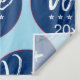 Tapeçaria de modelo de cinco estrelas para votação nas eleições de 2022. Este é um modelo simples que você pode personalizar para o seu ano, candidato e cores de partido político. Descrição do design: o fundo é azul claro. Você pode substituir a cor de fundo de sua preferência. O design principal é um grande círculo centralizado. O círculo é delineado de forma muito fina em vermelho, você pode alterar a cor do contorno. A parte interna do círculo é um azul médio a escuro. Dentro do círculo, os dois terços superiores do design têm a palavra "Vote" em uma fonte cursiva. Abaixo disso, cinco estrelas, e abaixo das estrelas há um modelo para a data da eleição, ano ou nome de um candidato.
