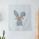 Nossa silhueta de coelho aquoso é enfeitada com uma coroa de flor aquática, com a palavra "criança selvagem" em roteiro de caligrafia branca.