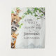 This baby shower backdrop was designed for a playful woodland celebration inspired by nature and adventure. Featuring sweet forest wildlife, soft greenery, and the phrase “A Little Wild One Is on the Way,” it creates a stunning focal point for photos, gift tables, and memorable party moments.