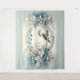 This artwork captures a serene winter moment through a soft watercolor style, featuring a delicate bluebird perched within a circular wreath of frosted leaves and pale blue berries. The composition feels airy and balanced, with gentle symmetry that draws the eye inward while maintaining a light, whimsical flow. Muted pastel tones of icy blue, blush, and soft sage create a calming color story that feels cozy and enchanting, echoing cottagecore and folk-inspired aesthetics. Subtle textures and painterly details give the scene a hand-touched warmth, while the wintry palette adds a quiet, dreamy atmosphere. The overall mood is peaceful and poetic, blending natural elegance with a storybook charm that feels both seasonal and timeless. AI generated artwork.