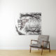 This elegant winter fox tapestry features a vigilant red fox standing in a snowy forest clearing surrounded by bare trees covered in frost. Created with flowing black and white ink wash painting techniques and subtle warm accents, the artwork captures detailed fur texture and the serene beauty of winter wilderness with falling snow particles and atmospheric mist. Perfect for nature lovers, wildlife enthusiasts, winter decor, cabin aesthetic, dark academia style, or as a meaningful gift for hikers and outdoor adventurers. this tapestry brings the peaceful spirit of the winter forest into any space, creating a contemplative and enchanting ambiance ideal for bedrooms, living rooms, offices, or meditation spaces.