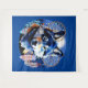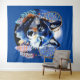 Lindo Lobo com olhos amarelos profundos, com Sonhadores Nativos Americanos, numa Paisagem Azul Selvagem e Lua Cheia. Design do logotipo original redondo vetor isolado em branco Copyright BluedarkArt The ChameleonArt.
