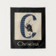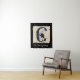 Design de Whimsical para Alice no País das Maravilhas amantes de todas as idades apresenta letra maiúscula / C inicial com preenchimento de harlequin preto e azul e ilustração original do Rabbit Branco que foi pintada, em um painel de madeira falsa e fundo preto. Personalizar com nome ou outra mensagem