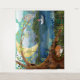 uma cena pitoresca de uma raposa dormindo, uma coruja na noite em um galho de árvore olhando para um rio iluminado pela lua com um barco origami; você pode ver peixes logo abaixo da superfície da água e ursos no horizonte. ilustração de becky nimoy 2018.