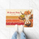 Dê as boas-vindas ao outono com este lindo tapete de porta em aquarela de uma vaca das Highlands em estilo rústico de casa de fazenda, adornado com girassóis e um laço de fita xadrez. Este tapete de porta pode ser personalizado com seu nome e a data de estabelecimento de sua casa. É uma adição perfeita para as decorações de outono de sua casa com suas cores quentes de outono, como laranja, amarelo e vermelho.