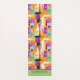 Retângulos e círculos de cor divertidos em lavagens de cor d'água de púrpura, verde, azul claro e laranja com toques de vermelho e preto. Este design interessante é personalizado de ambos os lados e vai agregar interesse às suas sessões de yoga.