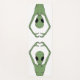 Vivid green alien forming a heart with arched arms against black, blending sci-fi whimsy with playful charm. Bold contrast, perfect for space fans and quirky casual outfits.