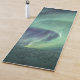 Fotografia artificial de luzes Nortes verdes e roxas muito fortes (Aurora borealis) no céu noturno ártico ao norte da Noruega, Escandinávia. A floresta em primeiro plano está completamente coberta de neve profunda. Localização da fotografia: perto da fronteira com a Finlândia entre Tromso e Kilpisjärvi.
