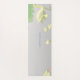 Ioga de moda com um belo lago cisne. Há um texto Autorealização no centro do tapete.