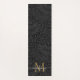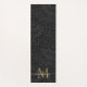 Boho Black Floral Dourado Monograma Nome Yoga Mat. Monograma é uma fonte de serifa de ouro elegante e seu nome é uma fonte de script branca.