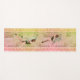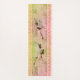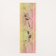 Padrão macio, pastel, abstrato de verde, amarelo, laranja e vermelho com uma borda de ornamentado e duas fadas semelhantes a píxias em terno-corpo verde, asas verdes claras criando um tapete ioga branco e divertido.