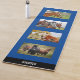 Yoga Mat reversível azul e preto. Front tem 4 fotos de cavalos com nome ou texto na parte inferior e o verso é para seu nome ou texto personalizado.