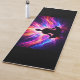 Featuring a meditative silhouette surrounded by flowing, luminous colors, this design creates a calming yet powerful visual focus during yoga, stretching, or meditation sessions. The contrast between the dark background and radiant light patterns adds a modern, eye-catching touch.