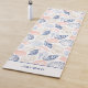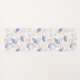 Padrão de dobra cor-de-rosa e azul-marinho com uma coleção de diferentes conchas náuticas sobre fundo branco.